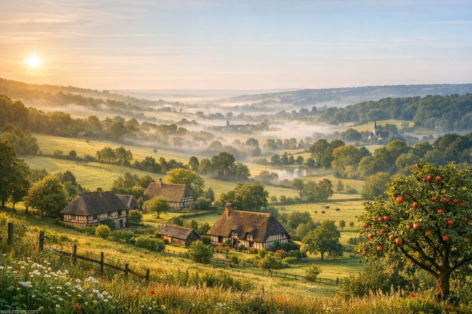 ↬ Lever du soleil en Pays d'Auge